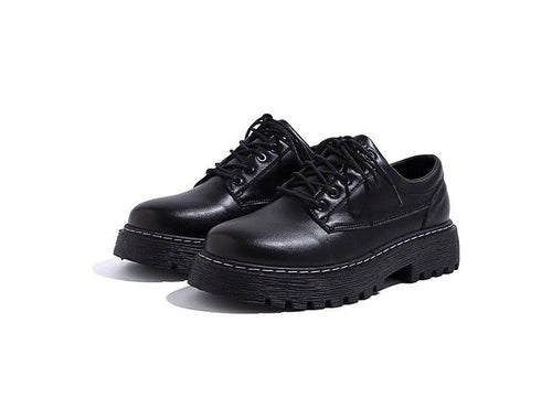 Chunky Platform Lug Sole Derby Shoes - Black Leather Oxfords